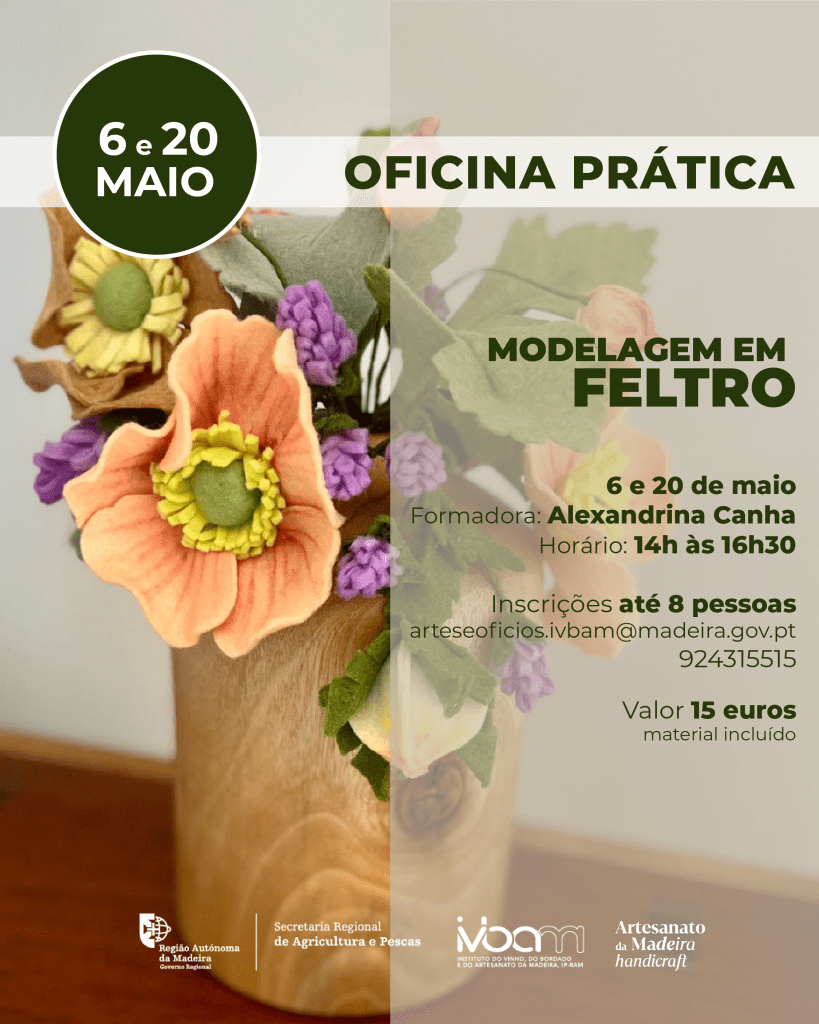 Descobre todas a as Oficinas Práticas que vão decorrer no Espaço Artes e Ofícios Tradicionais da Madeira, localizada na Rua dos Ferreiros 152 – Funchal, e põe as mãos na massa: feltro, vimes, sabonetes artesanais e muito mais!